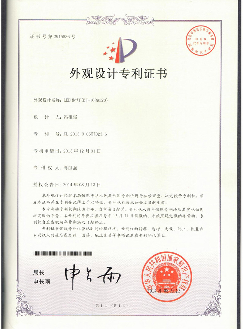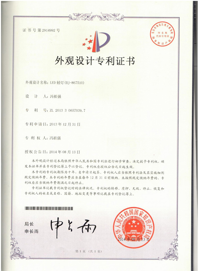 • Patent Certificate